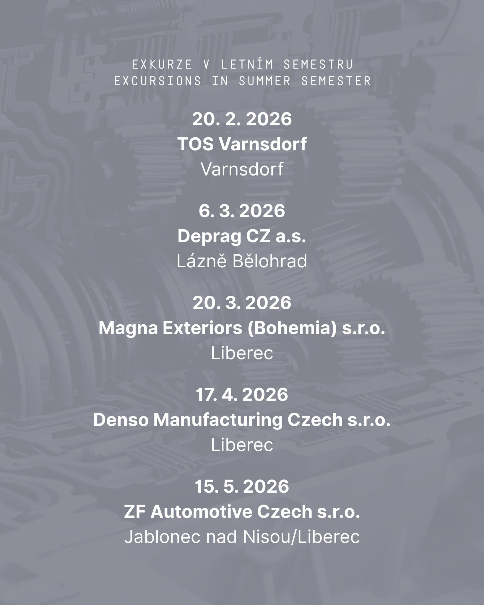 2. února – První ze série exkurzí pořádaných v letním semestru do podniků členů Průmyslové rady FS TUL byla zahájena. O akci byl ze strany studentů velký zýjem a byla naplněna plným počtem, tedy 15 student